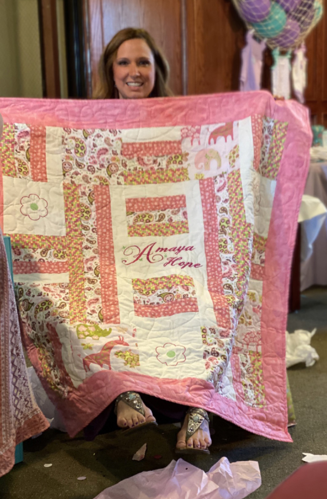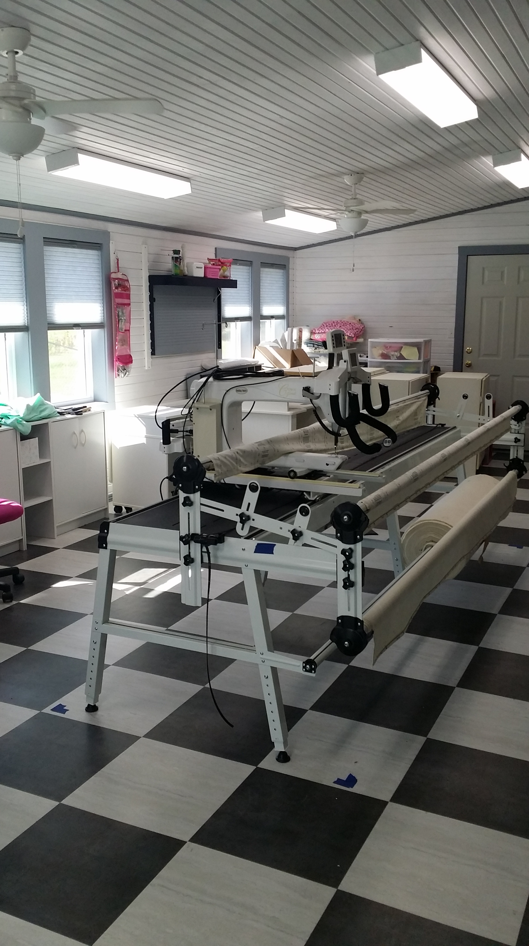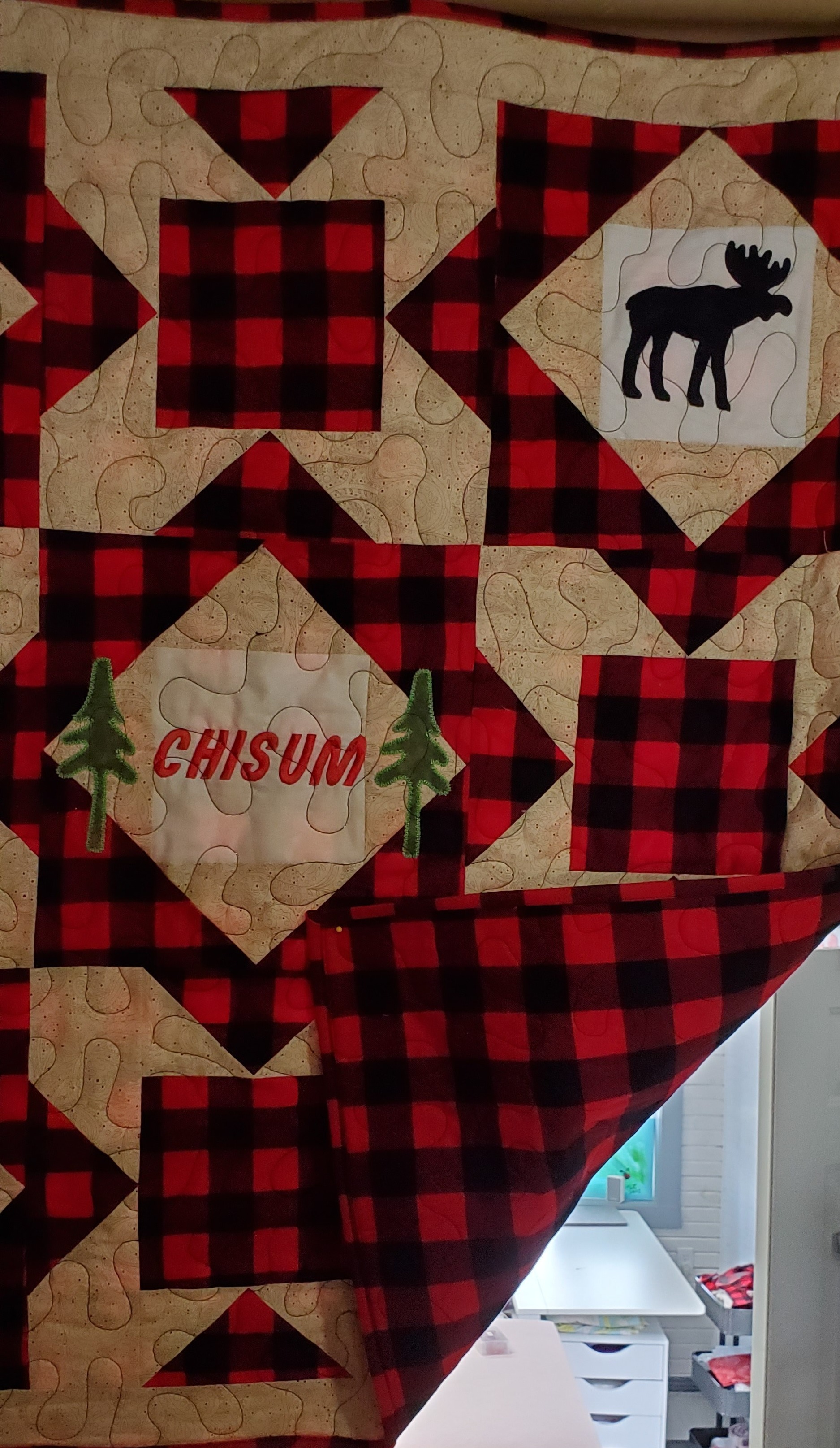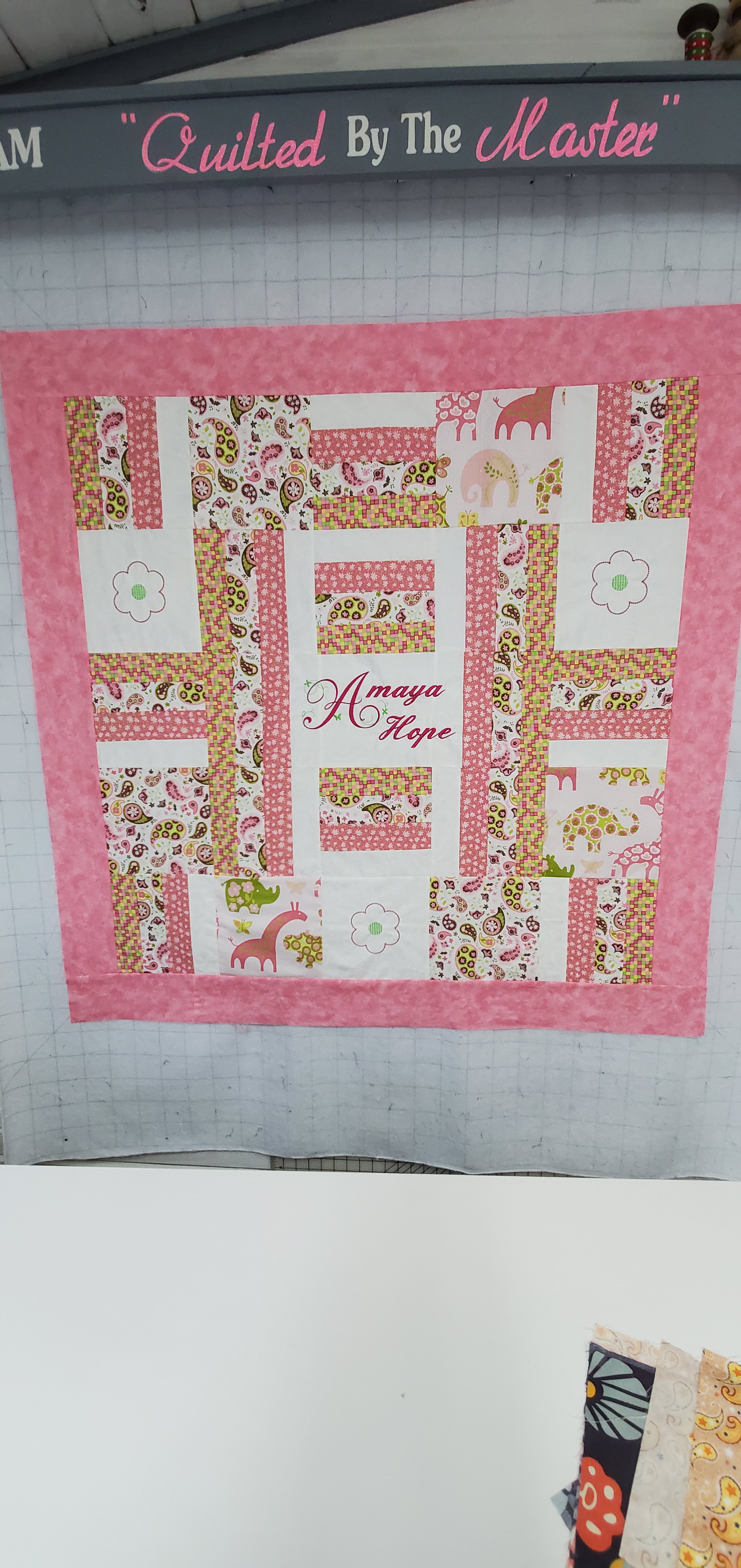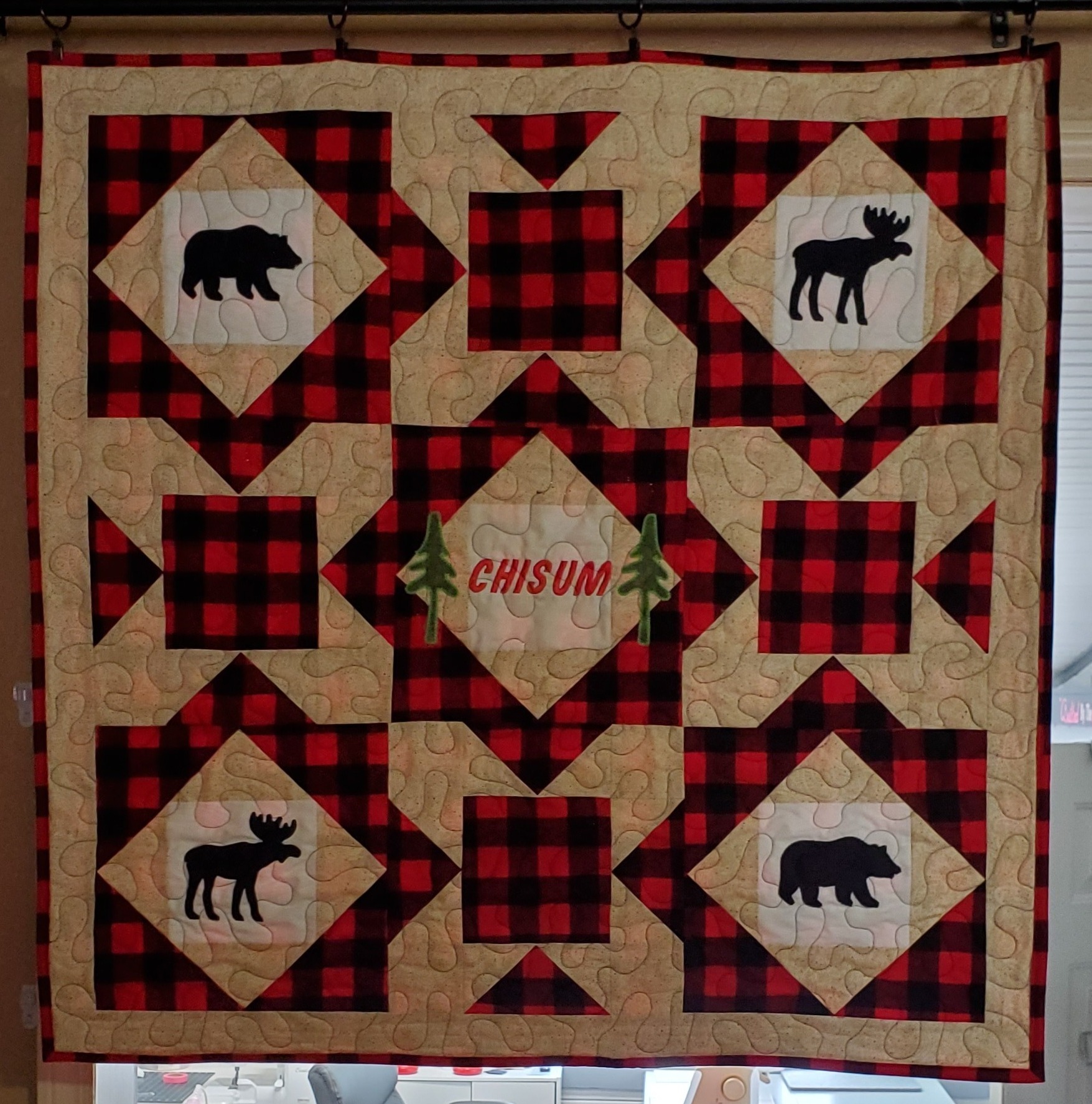 I quilted this top for Shiela Gowen. My brother recently married his high school sweetheart. Only 40 years later. She had this top from her grandmother. It was hand stitched I am guessing around 1950 to 1960. I machine quilted it for her. It had some stains and was not too flat, but I think it turned out ok. At least it will last her a little while longer.